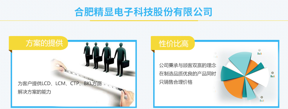?合肥精顯電子科技股份有限公司成立于2012年,由液晶行業(yè)知名企業(yè)廈門精顯電子有限公司投資建設(shè),是一家研發(fā)、生產(chǎn)、銷售高品質(zhì)液晶屏(LCD)、液晶顯示模塊(LCM)、背光(LED)、電容式觸摸屏(CTP)等節(jié)能環(huán)保產(chǎn)品并能為顧客提供解決方案的高新科技企業(yè)。 ?公司占地55畝,擁有建筑面積超過20000平米和潔凈廠房5400平米。 ?公司擁有一個超過15年以上LCD行業(yè)運營制造經(jīng)驗的團(tuán)隊。 ?公司獲得研發(fā)專利20余項。 ?公司通過C-TPAT認(rèn)證,ISO9001:2008認(rèn)證,產(chǎn)品通過了ROHS、REACH。 ?我們產(chǎn)品廣泛應(yīng)用于智能儀表(水表,電表,氣表)、家電、儀器儀表、計量器械、文教 器具、UPS電源、智能手機(jī)機(jī)、平板電腦等電子產(chǎn)品的顯示和控制。目前我們已樹立了良好的品牌形象,并與眾多公司(如GE, Ja...
